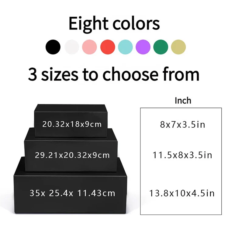 | Структурные преимущества | Сплошные цвета, соответствующие Pantone Жесткий серый картон премиум-класса Ламинированная глянцевая или матовая специальная бумага Дополнительная вставка из пенопласта EVA или картонная вставка Настраиваемая обработка поверхности Горячее тиснение фольгой (золото, серебро, розовое золото и т. д.) Тиснение / тиснение |